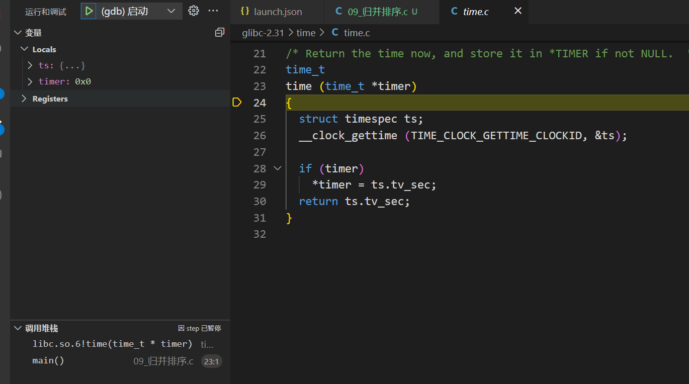 下载对应版本的glibc源代码,并将源代码目录放在配置文件中的"cwd": "${workspaceFolder}/glibc-2.31",中,此时再使用gdb调试遇到库函数时便会跳转至glibc源码中对应的函数实现